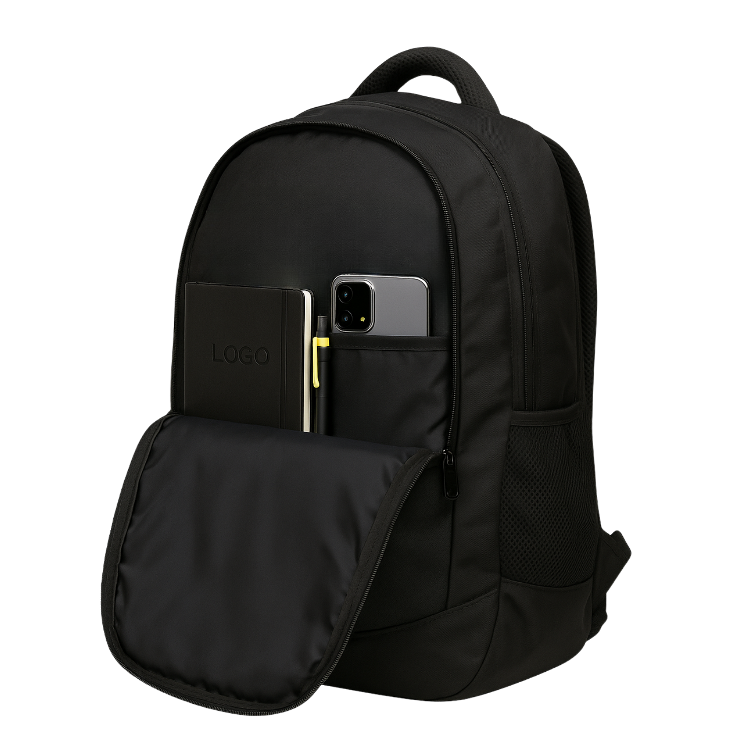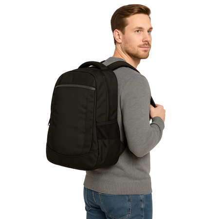 This functional and stylish black backpack is built