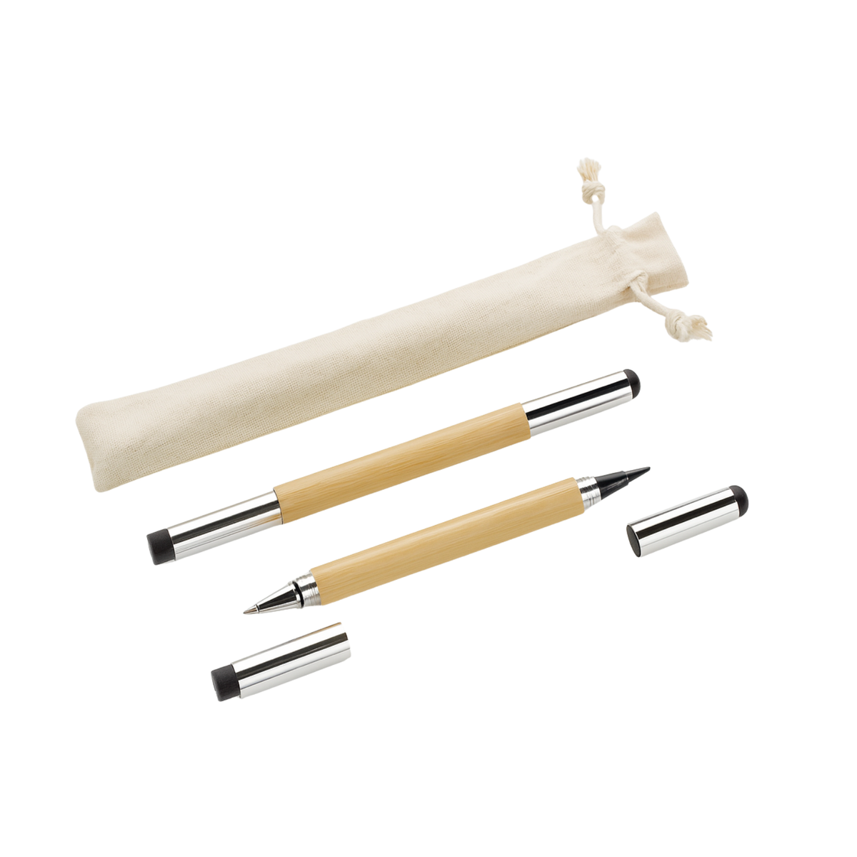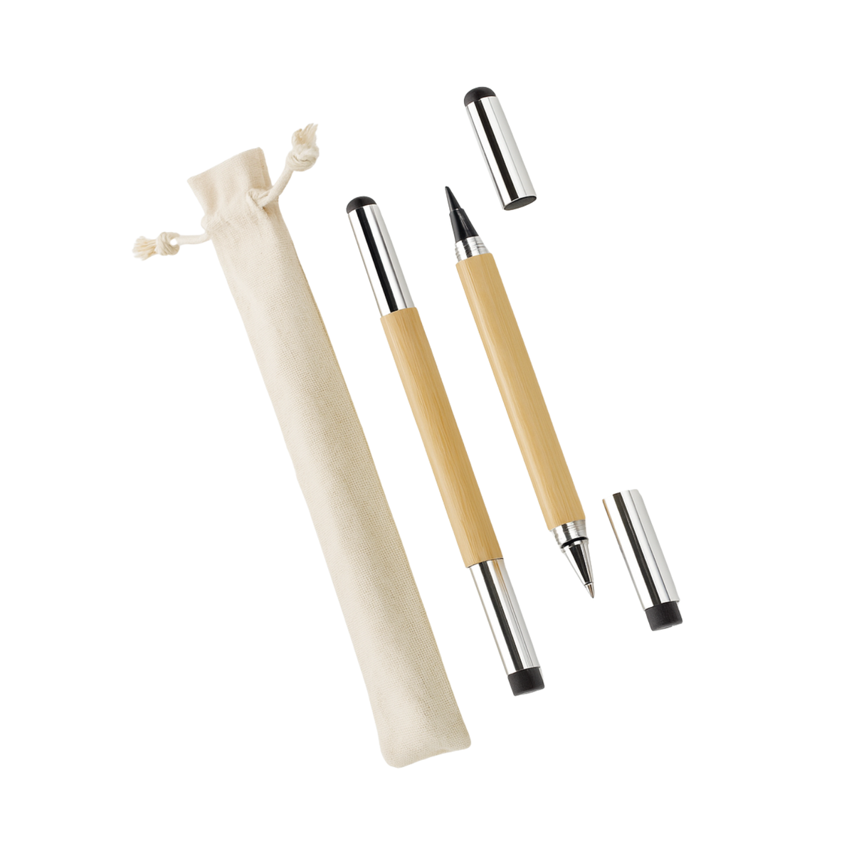 Premium Touch – Sleek metal accents and eco-friendly fabric pouch.